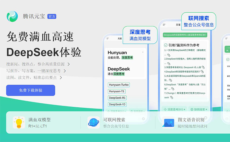 騰訊元寶支持語音和文字搜索,涵蓋微信公眾號和視頻號等信源。搜索結(jié)果以圖片、視頻、音樂和地圖等形式展現(xiàn);支持PDF、Word、PPT、Excel、TXT等格式文檔識別,支持本地和微信上傳;騰訊元寶可用于撰寫報(bào)告、方案、文案和代碼。設(shè)有DeepSeek R1模型集成深度思考與聯(lián)網(wǎng)搜索功能,該模型可以利用聯(lián)網(wǎng)搜索,確?;卮鸬臅r(shí)新性。