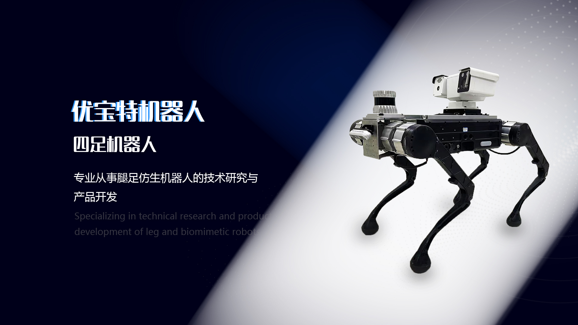 優(yōu)寶特四足機器人具備高動態(tài)性能的四足機器人,在步態(tài)規(guī)劃、腿足控制、環(huán)境感知方面技術(shù)先進,提供豐富的二次開發(fā)接口(USB、Ethernet、串口、CAN等),是商用、科研、教育四足機器人領(lǐng)域的旗艦產(chǎn)品。