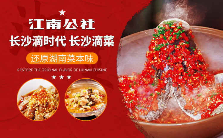湖南省江南人民公社餐飲連鎖有限公司是一家以經(jīng)營本土湘菜為主的特色餐飲全國連鎖管理機構(gòu),其前身“人民公社大食堂”,開創(chuàng)于1998年?,F(xiàn)公司總部設(shè)于長沙天心區(qū)大托鋪街道桂升路。