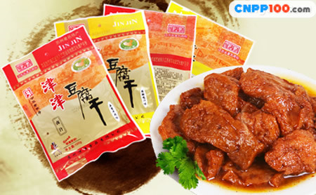 鹵汁豆腐干為蘇州傳統(tǒng)特產,多少年來一直為蘇州食品廠生產經營,直至九十年代初,計劃經濟時代向市場經濟時代的過渡,市場上生產的鹵汁豆腐干企業(yè)開始大量涌現(xiàn),最多達十五家左右,但唯有“津津牌”最為正宗著名, “津津牌”鹵汁豆腐干,精選上等原料,配以優(yōu)質輔料,使用傳統(tǒng)技法和先進工藝精心制作而成;鹵汁豐富、色澤光亮、鮮甜軟糯,風味獨特。兼具蘇州鹵菜和蜜餞兩大風味特色,是饋贈親友和旅游攜食的理想佳品。除了“鹵汁豆腐干”系列產品以外,津津食品公司先后開發(fā)了素火腿、素爆魚、開洋、五香、蝦味香干、桂花糖藕、肉汁醬煨蛋、筍豆等休閑食品,玫瑰、糟方、紅方各式乳腐,產品銷售區(qū)域擴大至華東地區(qū)及全國范圍和國外市場(以華人超市為主),同時與滬寧線為主的沃爾瑪、大潤發(fā)、家樂福、華潤、蘇果等超市以及大賣場進行戰(zhàn)略合作,深受廣大消費者的喜愛和歡迎 。