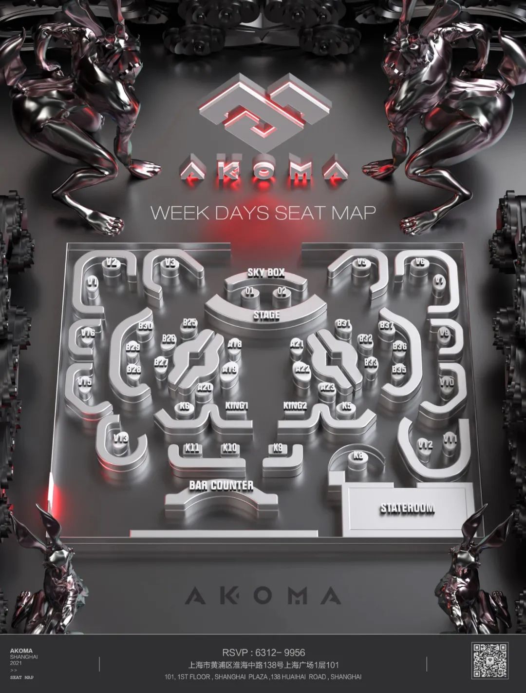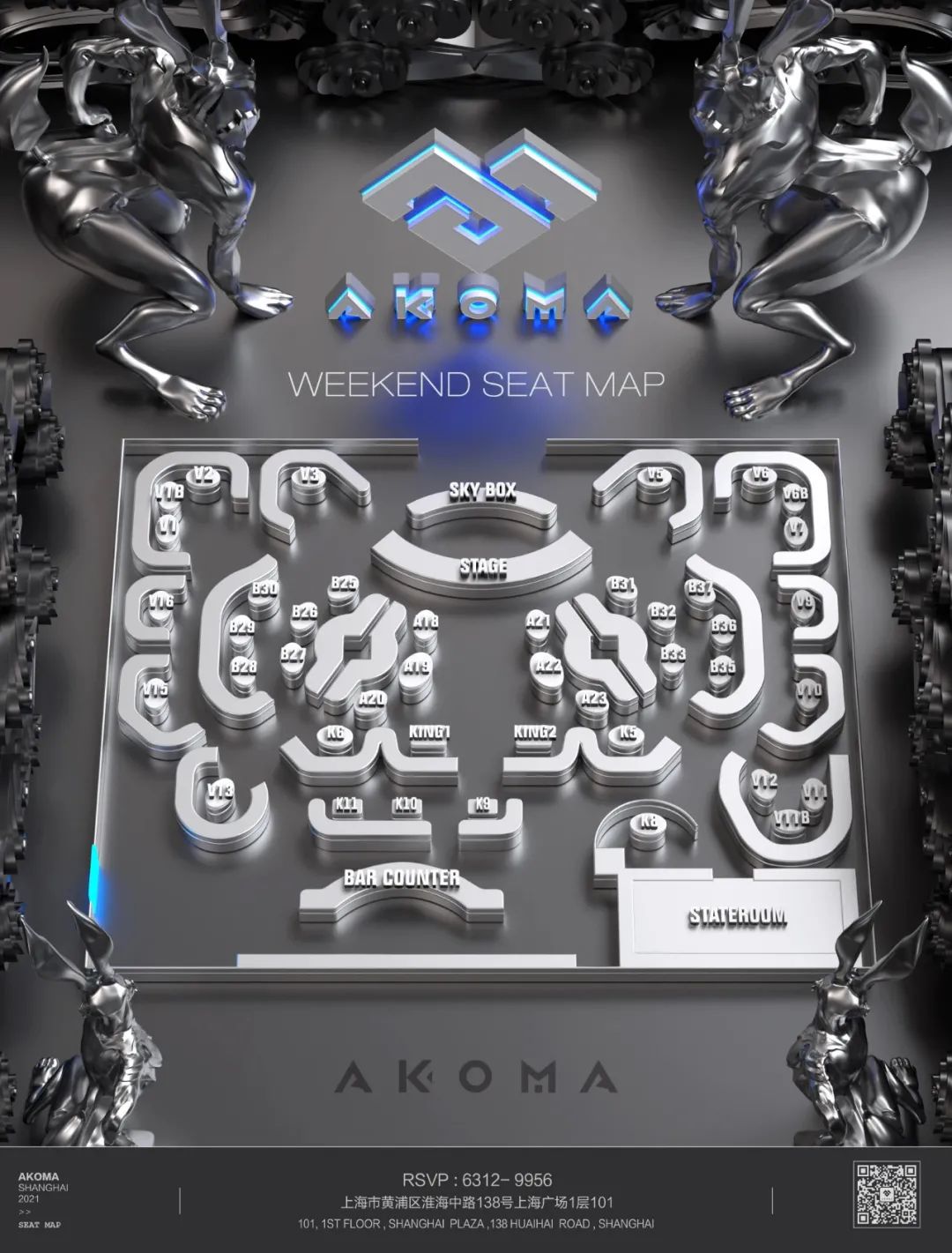 上海AKOMA酒吧卡座分布圖
